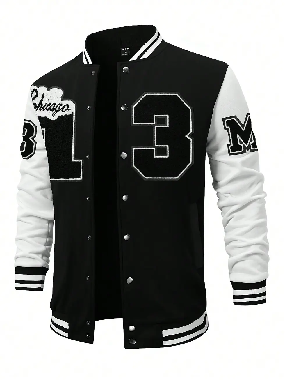Men's Button-Up White Varsity Jacket
